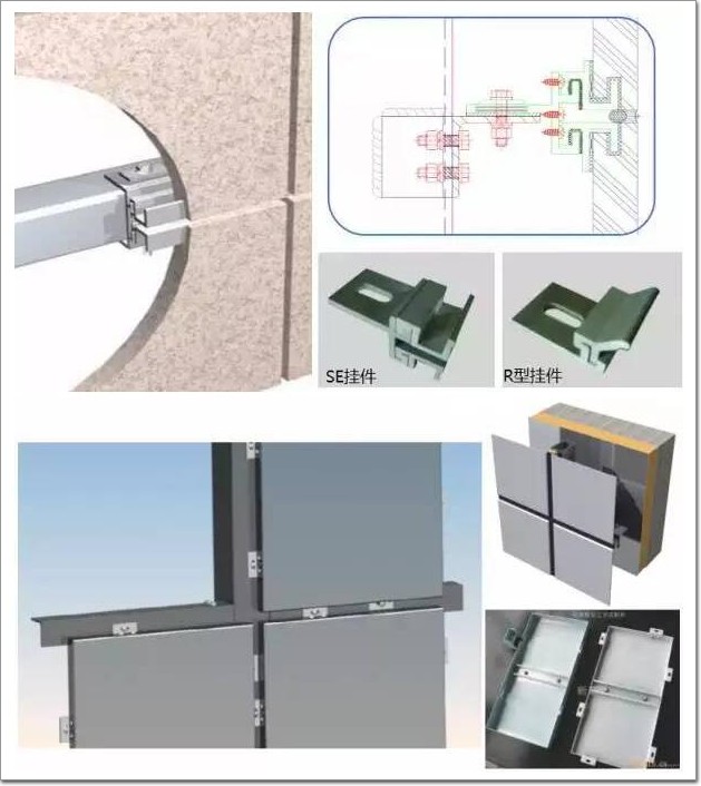 石材幕墻:不銹鋼掛件、鋁合金短槽、背栓、背槽