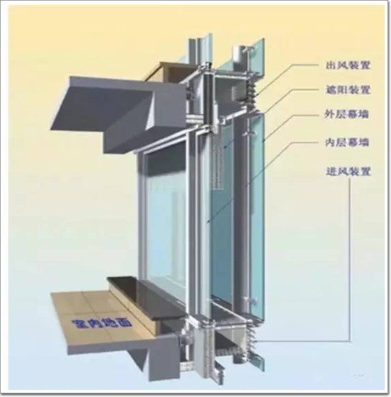 雙層幕墻的主要特征之一是具有熱通道,通過合理設計熱通道內空氣的有序流動實現優良的熱工性能。為保證空氣的清潔,內通風雙層幕墻應設置海綿過濾網,外通風幕墻應設置防蟲網。