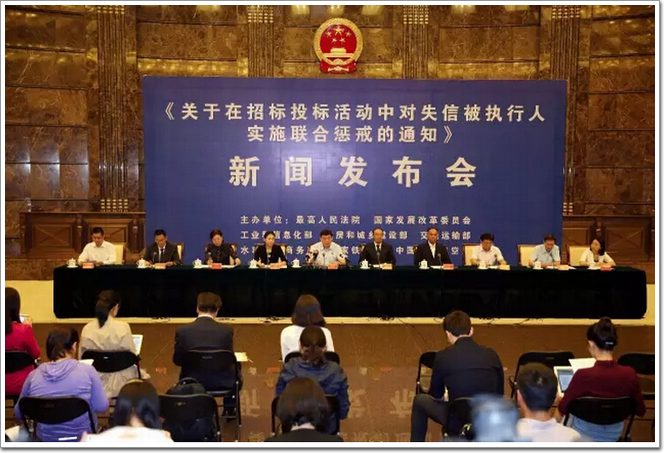 2016年9月22日10時,最高人民法院召開新聞發(fā)布會,最高人民法院、國家發(fā)改委等九部門發(fā)布關(guān)于在招標(biāo)投標(biāo)活動中對失信被執(zhí)行人實施聯(lián)合懲戒的通知。最高人民法院執(zhí)行局局長孟祥介紹相關(guān)情況、副局長張根大主持。