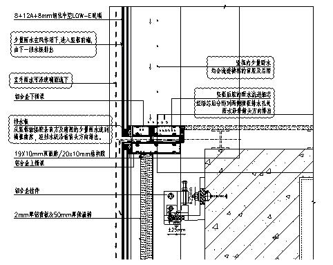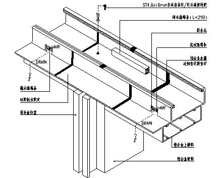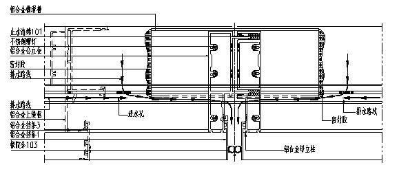 這種排水方式優缺點:這種單元式幕墻排水方式優點在于排水線只到立柱前端,能保證一些有外觀需求的幕墻設計更靈活的滿足外觀要求。同時排水的過程中不會使得幕墻玻璃面留下水漬,幕墻表面干凈。缺點在于由于排水孔位置在后腔前部,導致不易檢查排水口的堵塞情況,不利于幕墻漏水原因的檢查。所以要求板塊組裝及現場安裝要注意安裝前查看排水孔是否堵塞。