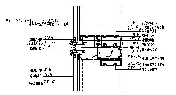 深圳投行大廈、華潤大涌E座塔樓等多個幕墻工程,地處臺風和大雨頻發的沿海地區,且均為高層和超高層建筑,對防水性能要求很高,采用了這種分層排水的單元式幕墻系統。單元體公母立柱、橫梁之間采用三道具有防水功能的三元乙丙膠(詞條“三元乙丙膠”由行業大百科提供)條進行密封防水處理,構成前部一個基本等壓的開口及內側兩個完整的等壓腔,有效地進行防止雨水的進入(系統示意圖如下:圖1、圖2、圖3、圖4)。