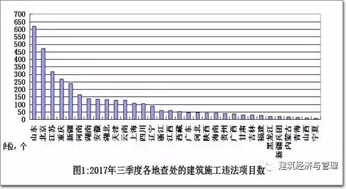 從各地查處的違法工程項目數(shù)量看,山東、北京、江蘇3省(市)查處力度較大,分別查處項目621個、472個、317個(見圖1)。