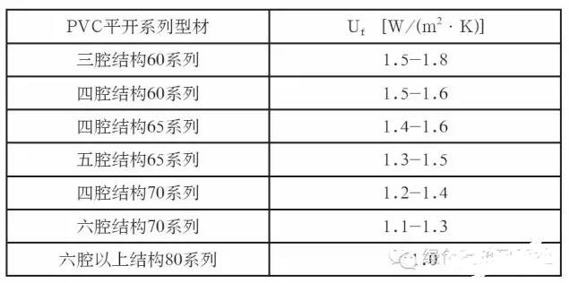 塑料型材的保溫性能主要參照下表所示: