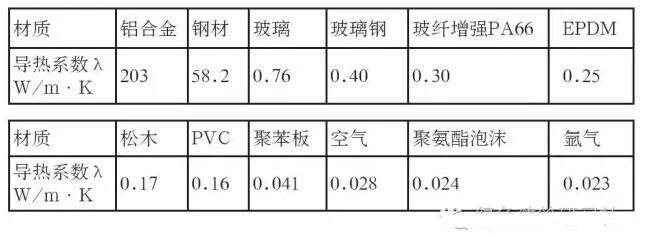 從材料的熱傳導性能來說,金屬材料的比玻璃的導熱系數(詞條“導熱系數”由行業大百科提供)高,而塑料、木材的導熱系數又比玻璃低。常用門窗相關材料的導熱系數見下表。