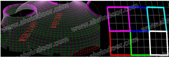 一般來說,異形幕墻雖然造型奇異,但通常還是有規律可尋。首先將異形幕墻外立面進行單元板塊劃分,劃分單元板塊大小的原則是應滿足可單元化生產和可單元化吊裝兩個條件,然后將劃分出來的單元板塊進行整體設計,整體組裝和整體吊裝,既可保證工程質量,又可極大的提高施工效率。