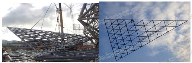 3) 9個小榀單元在工廠進行批量加工后運到工地,在地面進行整體焊接(詞條“焊接”由行業大百科提供)、組裝后,形成一個大單元板塊;