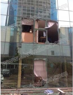 4、許多業(yè)主喜歡將部分玻璃幕墻開啟扇當(dāng)通風(fēng)窗使用,甚至還私自更改原設(shè)計,安裝不符合安全標(biāo)準(zhǔn)的玻璃,開啟活動越多密封性能就越差,一旦受風(fēng)荷載作用未關(guān)閉的開啟窗等部位受震動,極易造成玻璃破裂、開啟扇變形,甚至整體脫落。