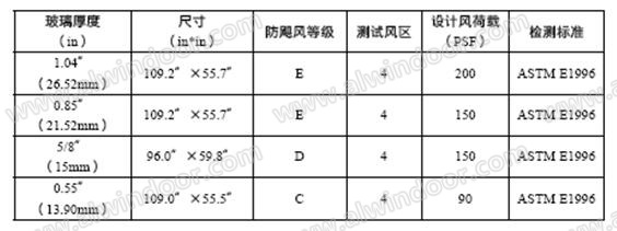 以上這些防颶風(fēng)測試標(biāo)準(zhǔn)在佛羅里達(dá)被廣泛認(rèn)可。當(dāng)然還要根據(jù)ASTM E1300確定玻璃厚度,根據(jù)ASCE7-98進(jìn)行抗風(fēng)壓設(shè)計。