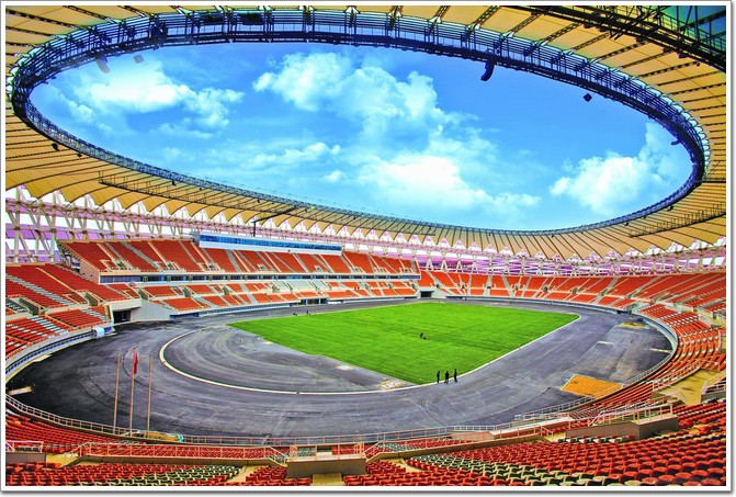 此外,在體育場罩棚“肩”部,通過調整氣枕角度,形成空氣可以流動的通風口,使體育場觀眾更舒適地觀看比賽。體育場主場地采用進口冷季型天然草種,塑膠攤鋪部分同英國倫敦水晶宮體育場一樣,采用德國現場攤鋪型跑道,這種跑道由多層鋪設組成的高性能面層組成,具有高性能的彈性系統、科學的運動力學設計、長時間的使用壽命等特性,抗釘鞋磨損,極高的紫外線耐抗能力,適用于各種氣候和各類國際田徑競賽。
