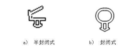 框扇間密封膠條的斷面形狀種類分為兩種,一種是半封閉式見圖1-a,一種是封閉式見圖1-b。