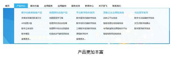 第一,產(chǎn)品中心更加豐富。新版網(wǎng)站產(chǎn)品中心囊括了羿飛教育主要的產(chǎn)品類型,包括數(shù)字化教育裝備產(chǎn)品、地理探究實(shí)踐產(chǎn)品、平臺教學(xué)軟件系列、羿教云生態(tài)課程系統(tǒng)、書法國學(xué)系列等。在每個(gè)產(chǎn)品類別中也展示了具體的產(chǎn)品,如數(shù)字化教育裝備產(chǎn)品中的多媒體球幕投影演示儀、AR地理沙盤、數(shù)字立體地形以及數(shù)字模型等,點(diǎn)擊具體的產(chǎn)品即可查閱。羿飛教育也將不斷豐富產(chǎn)品類別,為用戶提供更加優(yōu)異的數(shù)字化裝備產(chǎn)品。