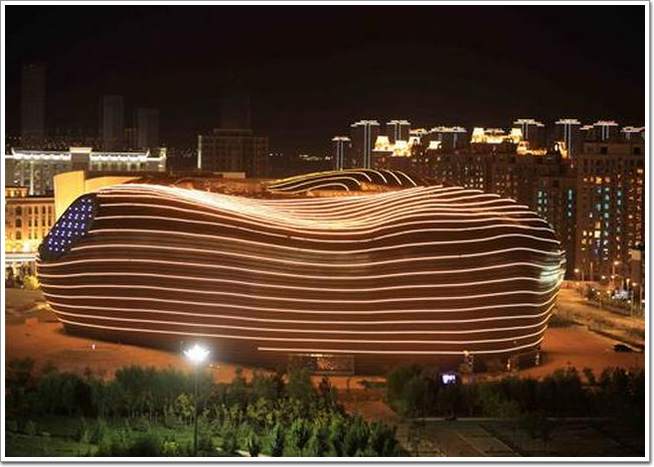 鄂爾多斯博物館,形如流動的沙丘,造型奇特,老外稱這樣的設計非常現代化。鄂爾多斯博物館位于鄂爾多斯市康巴什新區,于2006年開工建設,占地面積27760平方米,建筑面積41220平方米,為地下一層,地上四層,局部八層的綜合性博物館,配套有7個總計8500平方米的專業展廳,以及一個同時能容納260人的大型學術報告廳,70余間各類辦公室、會議室,2個貴賓接待室。同時,還配備有餐廳、地下停車場等多個輔助設施。