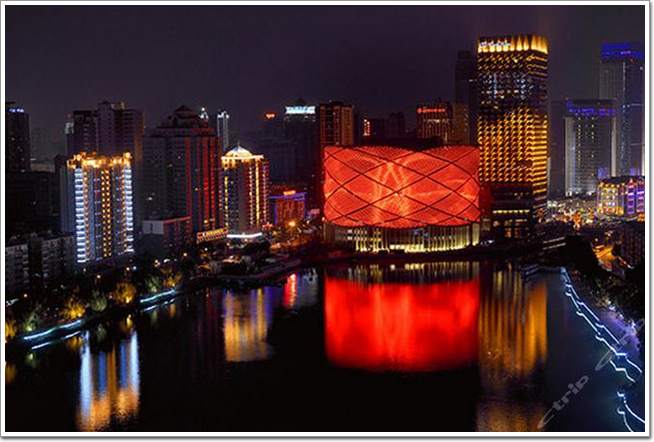 為湖北省武漢漢秀劇場,它像有個紅燈籠倒映在湖中,很是耀眼。