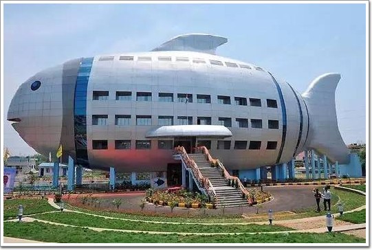 2012年落成的印度國家漁業(yè)發(fā)展委員會大樓受到英美媒體關(guān)注,不是由于它和全球漁業(yè)發(fā)展有重大關(guān)系,而是這座大樓真的是一條“魚”,胖嘟嘟的可愛造型讓人忍俊不禁。