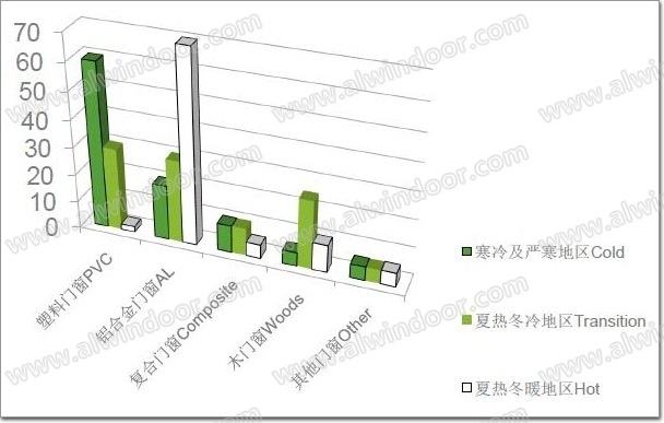 由于不同類型的門窗適用于不同的氣候分區,加上我國氣候分區復雜,因此建筑門窗的應用具有地域分布的特點。在上海、廣州、深圳、蘇州、無錫、廈門等大城市及經濟發達地區鋁合金門窗占90%以上,而在黑龍江、吉林、內蒙古、遼寧、甘肅等地區,由于處于嚴寒氣候分區,塑料門窗具有優勢占60%以上。