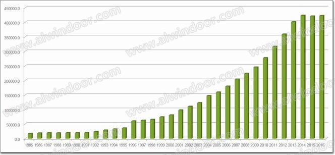 按照門窗應用的建筑性質,建筑門窗市場還可分為新建建筑市場與既有建筑改造(詞條“既有建筑改造”由行業大百科提供)市場。隨著建筑門窗行業的發展,我國建筑門窗的保有量逐漸增多,據不完全估計,總量約為130億-150億m2。