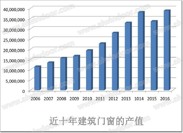 9、近十年建筑門窗的產量與產值