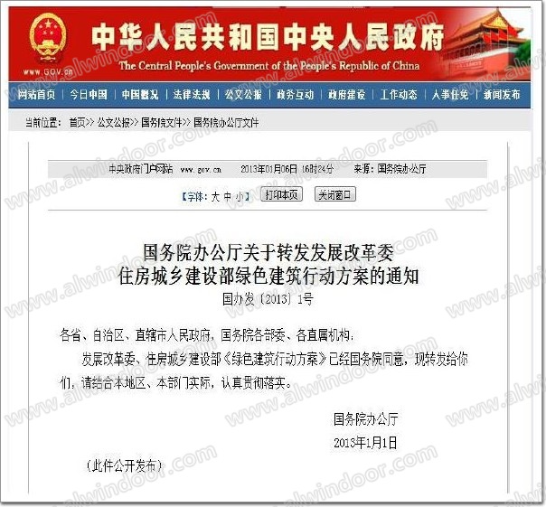 2013年1月1日,國務(wù)院轉(zhuǎn)發(fā)《綠色建筑行動方案》