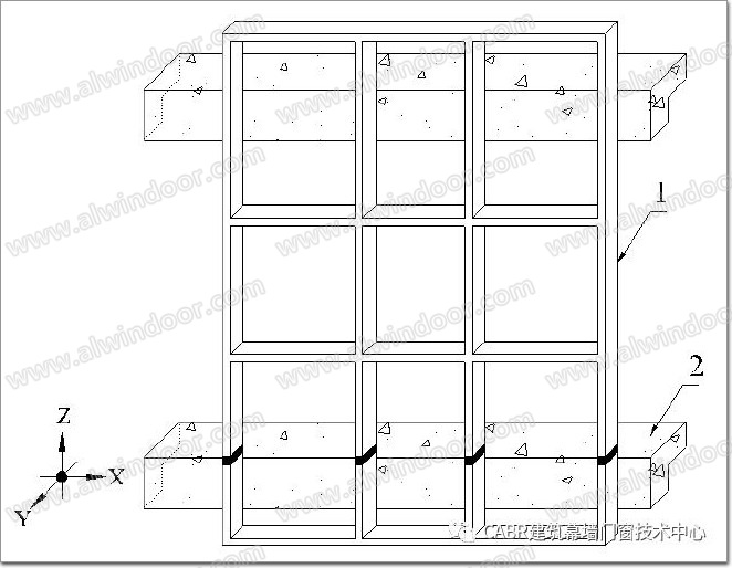 本標(biāo)準(zhǔn)提出了層間變形的基本定義,在此定義基礎(chǔ)上提出了幕墻平面內(nèi)變形性能(X軸維度)、幕墻平面外變形性能(Y軸維度)、幕墻垂直方向變形性能(Z軸維度)及幕墻層間組合位移變形性能的定義。需要強(qiáng)調(diào)的是層間變形是由于在地震和風(fēng)荷載等作用,建筑物相鄰兩個(gè)樓層間的相對(duì)位移。因此所謂的平面不是指幕墻本身的平面,而是相對(duì)于相鄰樓層來進(jìn)行定義的。因此標(biāo)準(zhǔn)對(duì)X軸、Y軸、Z軸方向畫圖進(jìn)行示意。