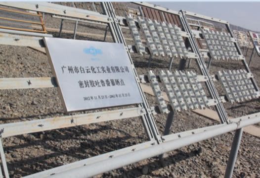 2012年,白云化工攜手廣州合成材料研究院有限公司老化研究所,同步在廣州和新疆吐魯番兩個極限氣候區(qū)的暴曬試驗點啟動試樣暴曬實驗。