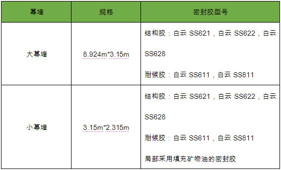 試驗實體幕墻為一大一小兩幅幕墻組成,小幕墻局部采用填充礦物油的密封膠,作為對比幕墻。