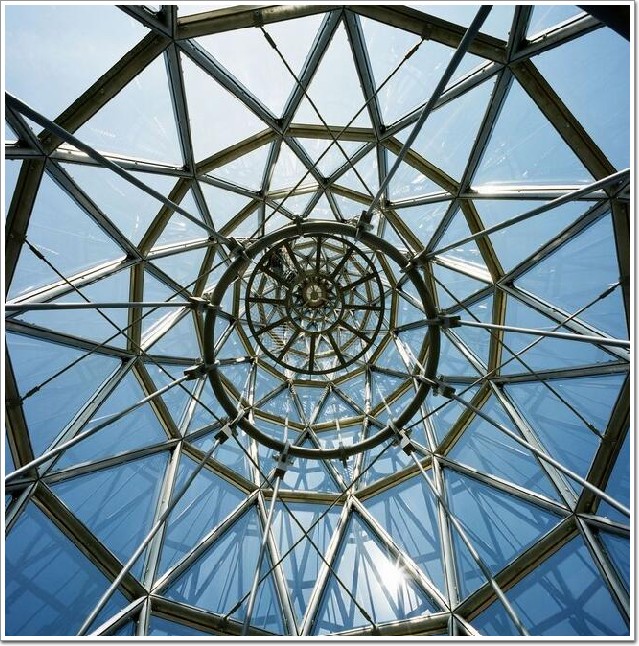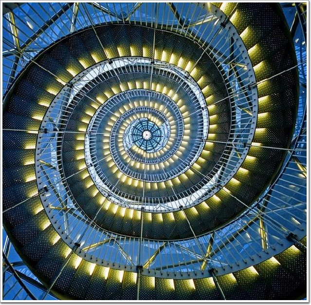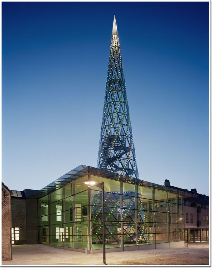 金銀絲結(jié)構(gòu)和超透明覆層使其整座建筑幾乎呈透明狀態(tài),白天,它不會(huì)成為城市景觀中多么張揚(yáng)的存在,但到了晚上,大量的背光驅(qū)動(dòng)器二極管和發(fā)光點(diǎn),讓突出的圓錐體成了真正的地標(biāo)(詞條“地標(biāo)”由行業(yè)大百科提供)。由穿孔鋼板制成的發(fā)光點(diǎn),使內(nèi)部的探照燈向上發(fā)出光亮。連接到框架接頭的背光驅(qū)動(dòng)器二極管,以不同的圖案形式照亮建筑。看上去,這些光點(diǎn)蜿蜒盤(pán)踞于玻璃墻上,緩緩爬到了頂點(diǎn),不停地變化建筑視覺(jué)效果,這就是一個(gè)為黑夜而生的奇妙建筑。