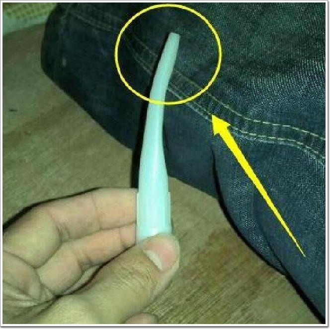 1.用打火機把玻璃膠的噴嘴烤軟,然后捏扁玻璃膠的噴嘴,如下圖所示;