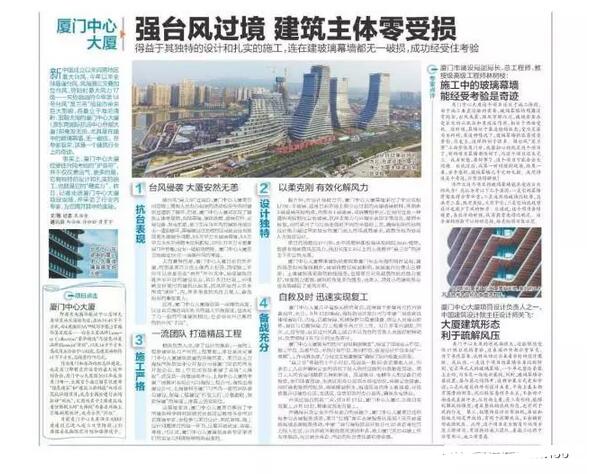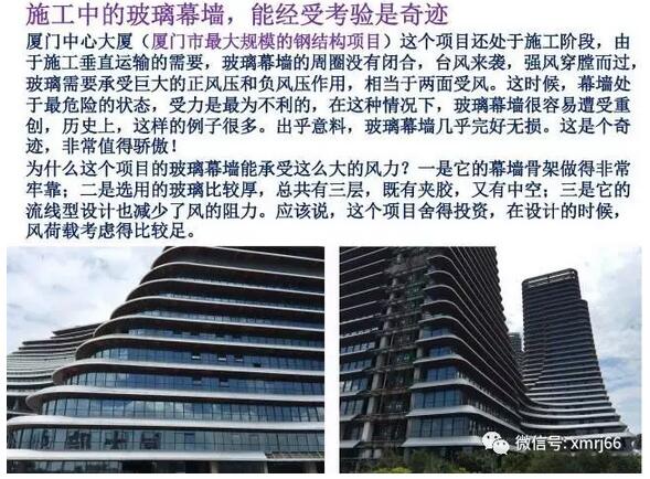 在“納沙”臺風即將在福建沿海登陸之際,2017年7月29日下午,廈門市建設局巡視員、副局長林樹枝博士帶隊檢查防臺風工作,并在銳建工程咨詢有限公司調研玻璃幕墻抗臺風設計。期間,林樹枝副局長作了“強臺風對高層建筑圍護結構的影響分析”的報告,詳細介紹了去年“莫蘭蒂”臺風對廈門市的影響和強臺風對高層建筑的影響,總結了高層建筑的抗臺風經驗,并對今后的高層建筑圍護結構抗臺風提出了對策和辦法。