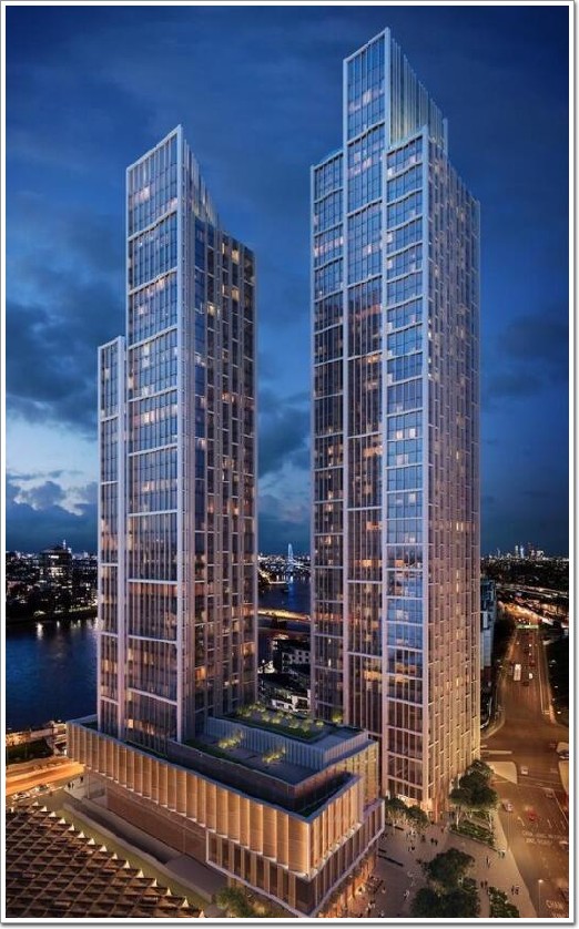 倫敦ONE項目建筑面積約10.5萬平米,包括一棟204米城市塔樓,一棟165米河景塔樓,均為泰晤士河畔頂級豪宅,同時配套超五星級萬達文華(VISTA)酒店。而204米至高,是迄今倫敦住宅第一高樓。