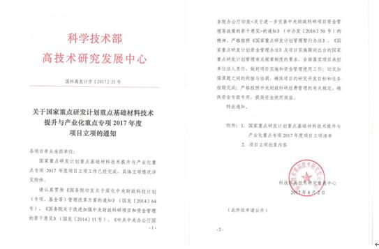 國家重點研發計劃由原973計劃、863計劃、國家科技支撐計劃、國際科技合作與交流專項、產業技術研究與開發基金和公益性行業科研專項等整合而成。國家重點研發計劃項目的申報成功,對于強化公司基礎性、前瞻性問題研究,突破重大共性關鍵技術,提升核心競爭力和自主創新能力具有重要意義。