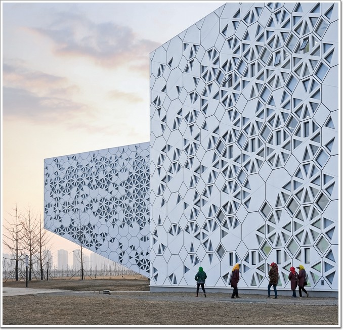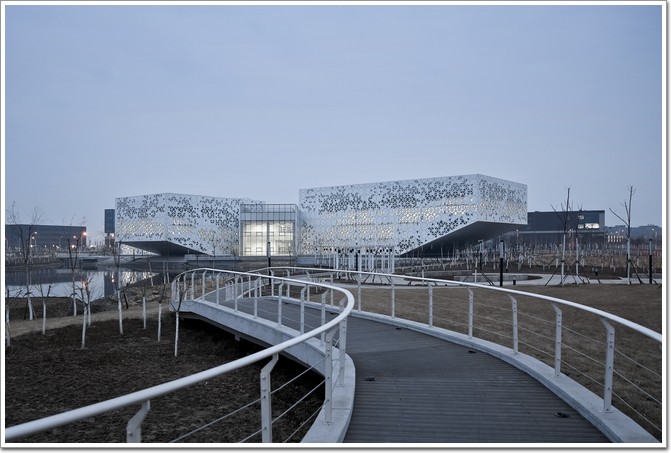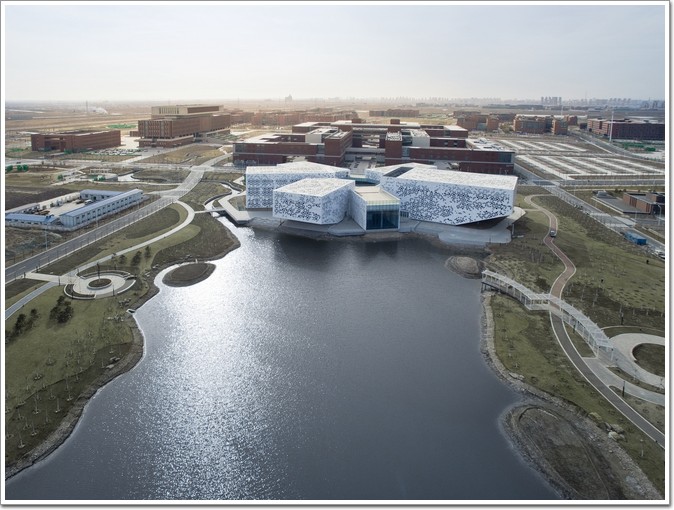 說到設計高分類建筑,通常都不會在大學園區內見到,因為以大學城為代表的中國大學校園建設,往往以大規模的尺度和速成模式為主要特征,而多樣性的缺失往往是其飽受詬病之處。南開大學津南校區學生活動中心的設計,試圖在這一現實建造狀況背景下,提供一處異質的,與自然融合的“烏托邦”,以打破校園建筑“不走心”和速成模式的規則。