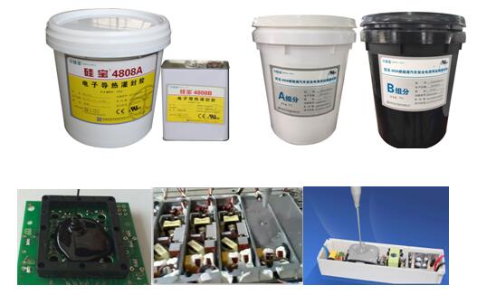 硅寶導熱灌封硅橡膠產品主要有硅寶4808電子導熱灌封膠和硅寶4926系列導熱灌封膠,其中硅寶4808為縮合型導熱灌封膠,混合比例為(5~10):1,具有優異的導熱性和粘結性,硅寶4926為加成型導熱灌封膠,混合比例為1:1,具有優異的導熱性。
