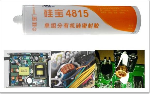 近年來,隨著電子電器工業的快速發展,硅橡膠材料在電子電器行業中也得到了廣泛的應用,但由于硅橡膠材料本身是聚合物材料,存在著易燃,發煙量大等問題,因此電子電器材料領域急需集導熱、阻燃、絕緣性能良好于一體的硅橡膠材料,導熱阻燃型硅橡膠已經慢慢成為電子電器行業中硅橡膠材料的重要一員。大功率散熱的場合,如半導體和散熱器的粘合、管心的保護、管殼的密封、電子整流器、熱敏電阻器的導熱絕緣,微包裝中多層板的導熱絕緣組裝和鋰電池的導熱灌封等都需要不同性能指標的導熱阻燃絕緣硅橡膠。硅寶4815單組分有機硅密封膠,實現導熱填料、阻燃劑與基礎聚合物的完美結合使其導熱系數超過0.7 W/m·K,阻燃達到UL94 V-0級;由于其優異的導熱、阻燃性能已被廣泛應用于導熱和阻燃均要求較高的汽車模塊、電路模塊和PCB板等電子電器產品中。