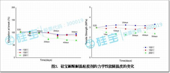 圖3. 硅寶耐酸耐溫粘接劑的力學(xué)性能隨溫度的變化