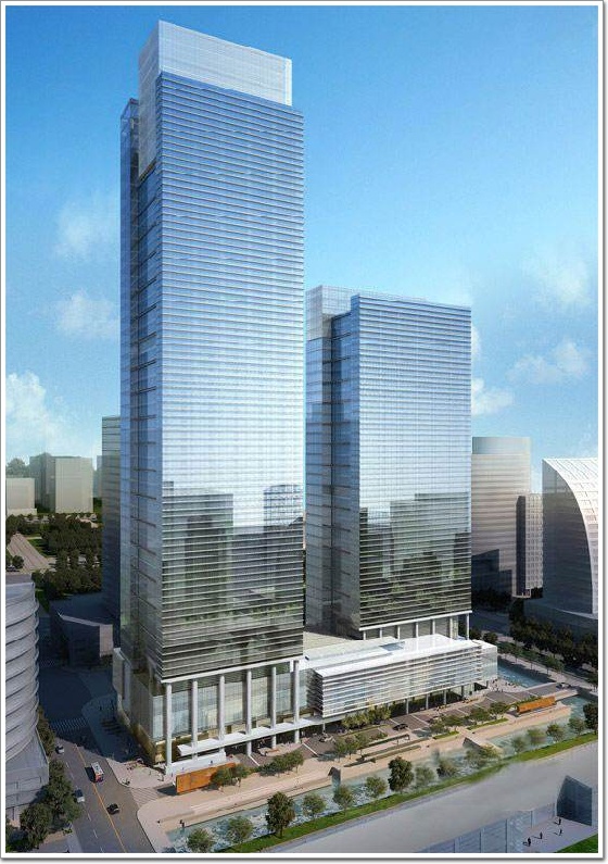 財富廣場位于蘇州工業園區湖西CBD中心區域,毗鄰“秋褲樓”蘇州中心。項目占地1.3公頃,建筑面積19.9萬平方米,由全球著名的美國KPF建筑師事務所設計,是集商務辦公、金融、商業為一體的國際超5A甲級寫字樓。