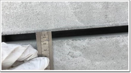 在實際工程施工時,應首先確認拼接縫的寬度和深度是否符合規定(如圖2)。接縫寬度太小,不符合設計要求,而且施工操作不方便,施工質量不能保證;接縫太小,應使用工具進行切割,保證接縫不小于15mm;
