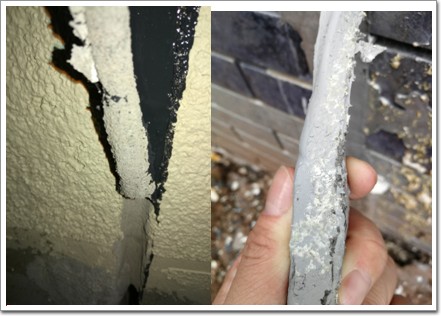 有些裝配式建筑在墻板接縫中會先填聚氨酯發泡膠后再打密封膠,會造成聚氨酯發泡膠附著在密封膠膠縫中(如圖6),影響密封膠與基材的有效接觸。