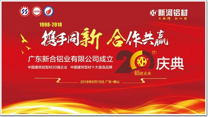 2018年6月15日,廣東新合鋁業有限公司迎來成立“20周年”的好日子,在富林朗月酒店舉行“新合20周年廠慶”活動,與建筑行業內眾多知名房地產企業、廣大的合作伙伴,經銷商、客戶朋友以及來自行業協會的領導、專家,門窗幕墻單位、設計院、顧問咨詢公司領導等,近千人共聚一堂,“攜手同新、合作共贏”。中國幕墻網ALwindoor.com作為特約媒體,全程參與報道本次盛會。