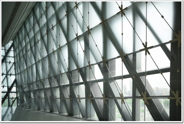 音樂廳建筑外部采用鋼結構配合陶土板幕墻和玻璃幕墻,屋頂設計為大跨度鋼結構的龍骨梁,建筑內部基座等均采用鋼筋混凝土結構。哈爾濱音樂廳是第一個用玻璃做幕墻的音樂廳,由于音樂廳的特殊性,做為玻璃供應商的上海皓晶玻璃制品有限公司為該項目打造了專屬玻璃產品,對玻璃表面進行了處理,避免了干擾,做好了聲源控制。外立面玻璃幕墻全部采用了雙層玻璃幕墻(詞條“雙層玻璃幕墻”由行業大百科提供)結構,即在傳統外玻璃幕墻內加裝一層內飾工藝雕刻玻璃內幕墻,以解決聲音傳遞以玻璃為介質而產生的聲音傳遞反射過快的問題,利用工藝雕刻玻璃表面凸凹不平的表面,達到聲音的反射效果。