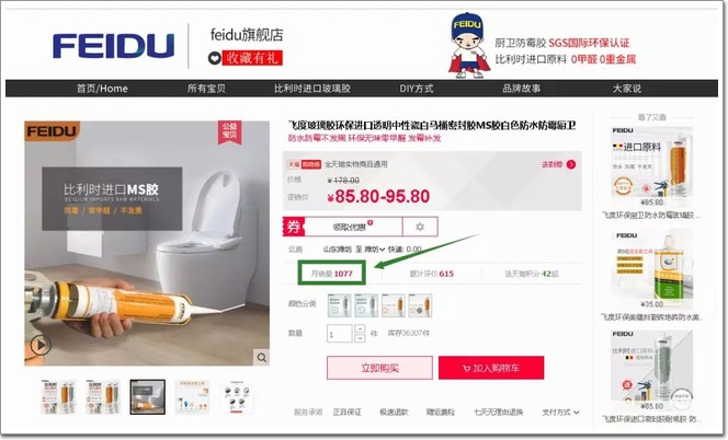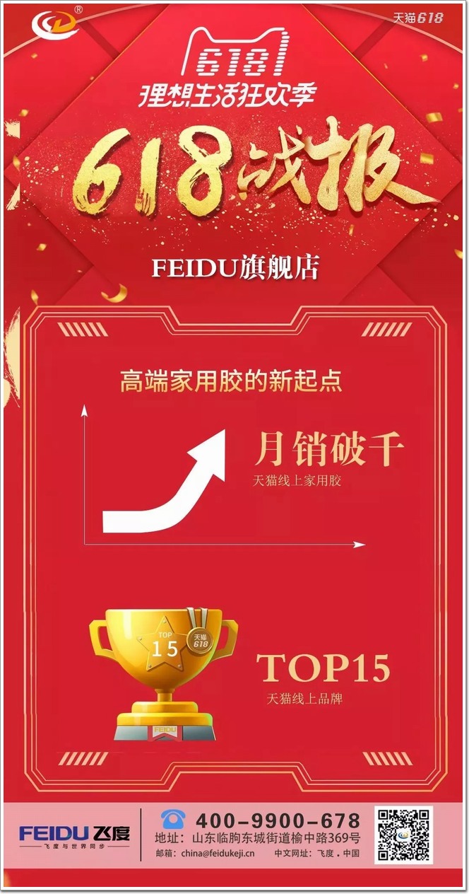 FEIDU旗艦店在本次的天貓618活動中,月銷量破千,位于天貓同類線上品牌旗艦店前15名,引領高端家用膠品牌。