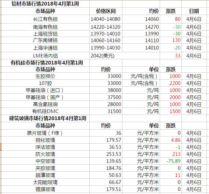 此原材料價格由中國幕墻網收集整理,僅供參考!