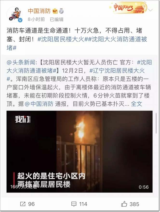 @中國消防 更是在凌晨發文強調:消防車通道是生命通道!十萬火急,不得占用、堵塞、封閉!