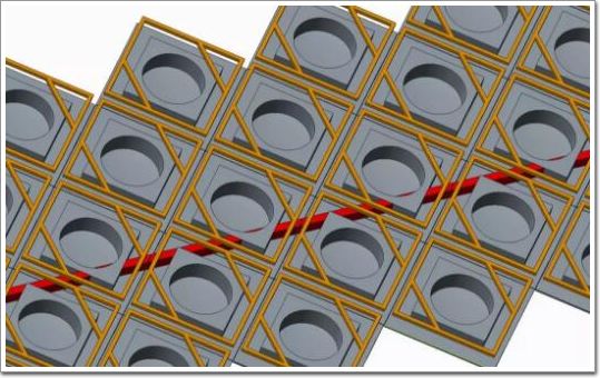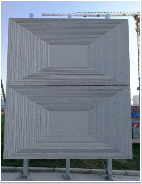 “聚寶盆”碗狀GRC雖然整體呈現的是一個東西走向直線距離達155米,最高點達29米的龐大“聚寶盆”,但分解開來,其實是由一個個小的梯形“聚寶盆”組成的。說它小,其實也不小,最大分格的碗狀GRC達到2933x1664mm,重達500公斤。造型上外端由一個較大的梯形組成,里端則由1/3板塊大小的等比例梯形內凹170mm形成一個小的“聚寶盆”,“盆”里側則規則的布置著“回”字狀鋸齒形拉槽。