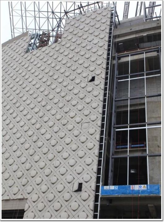 二.面積最大 GRC幕墻——東西兩側弧形立面菱形GRC幕墻設計
