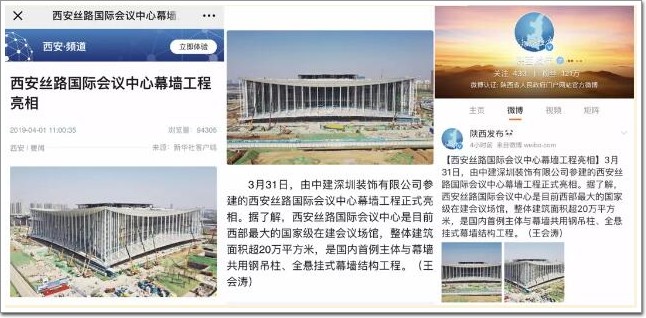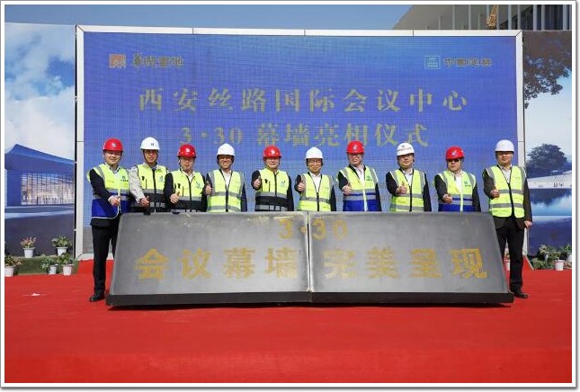 3月31日,中建深裝西安絲路國際會議中心幕墻項目舉行幕墻節點亮相儀式。華潤置地副總裁燕現軍,北京遠達國際工程管理咨詢有限公司總經理助理丁緒光,中國建筑第八工程局有限公司西北公司黨委書記、董事長段輝樂,中建深圳裝飾有限公司總經理、黨委副書記張軍國,副總經理、總法律顧問張能訓出席。此外,來自業主、監理、總包、中建深裝幕墻分公司以及勞務代表等單位共計300余人參加此次活動,新華社及陜西省戶政微博同步報道。