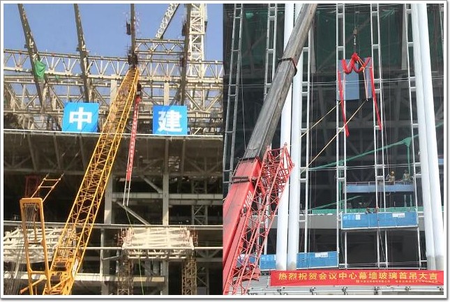 項目管理團隊經過多次討論,決定采用大型履帶吊進行安裝,并嚴格規定了履帶吊站位及行走路線,為后期施工避免了“路線錯誤”。吊柱不僅作為承受荷載(詞條“荷載”由行業大百科提供)的受力構件(詞條“構件”由行業大百科提供),同時作為玻璃幕墻的龍骨,因此對安裝精度要求十分苛刻,施工人員操作重達數十噸的鋼吊柱,進行著繡花一般的精細作業,誤差度在幾毫米以內,經過一次次試驗,鐵一般的漢子變成了“繡花漢”,心靈手巧也成了這些“繡花漢”的代名詞。