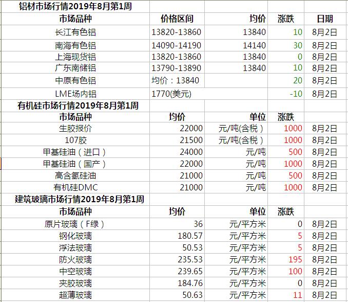 此原材料價格由中國幕墻網收集整理,僅供參考!