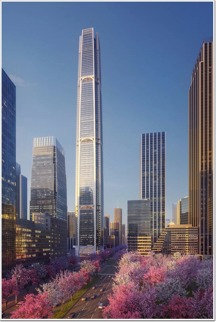 SOM在中國(guó)江蘇省公布了一項(xiàng)破紀(jì)錄的超高層建筑的設(shè)計(jì)方案。綠地金茂國(guó)際金融中心自2017年開始建設(shè),一旦建成,將成為近500米的最高塔樓,超過了同樣由SOM設(shè)計(jì)的南京紫峰大廈(450米)。