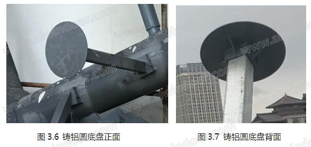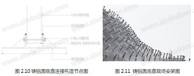 (2)采用構件式龍骨及點支撐組合形式,以四個鑄鋁圓底盤為一塊鋁板安裝單元;
