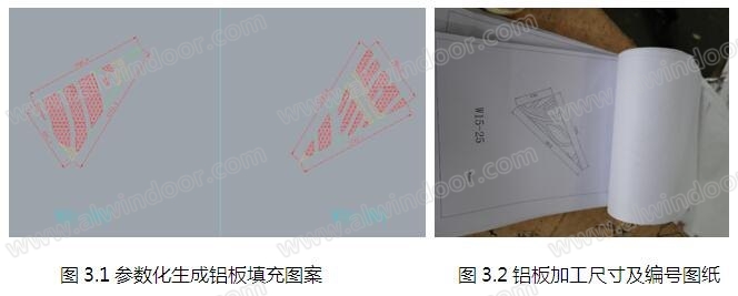 (3)根據我司提供的帶花紋圖案填充的鋁板加工圖(填充圖案采用參數化模塊生成,精度高),按1:1生成圖案紙,進行貼膜(詞條“貼膜”由行業大百科提供)、噴涂,鋁板表面圖案精度高,為現場鋁板拼接圖案效果打下基礎。
